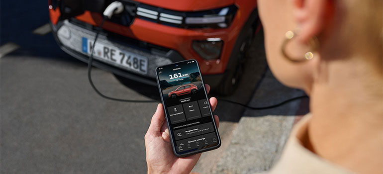 Draußen ist es bitterkalt – aber wenn du in deinen Dacia einsteigst, empfängt dich wohlige Wärme. Möglich macht dies die My Dacia App. Diese beinhaltet eine Vorklimatisierungsfunktion, mit der du vom Sofa aus den Innenraum auf deine persönliche Wohlfühltemperatur vorheizen kannst. Die Energie dafür muss also nicht während der Fahrt abgezweigt werden. Besonders smart: Während eines Ladevorgangs greift der Dacia Spring nicht auf den Strom aus der Batterie zurück, sondern auf den Netzstrom. Du kannst deine geplante Fahrt also mit vollem Akku starten.