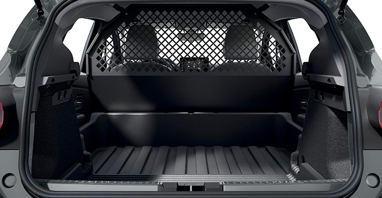 Für größere Tiere wie beispielsweise den Labrador kann ein Trenngitter die richtige Lösung sein, wie Dacia es für seine Modelle anbietet: Es verhindert, dass das Tier bei einem Unfall oder einem Bremsmanöver in die Fahrerkabine geschleudert und somit zur tödlichen Gefahr für die Passagiere wird. Denn bereits bei einer Geschwindigkeit von 50 km/h trifft ein 20 Kilogramm schwerer Hund bei einer Kollision mit bis zu 600 Kilogramm Durchschlagskraft4 auf das Armaturenbrett, Sitz oder – noch schlimmer – den Körper eines Fahrzeuginsassen.