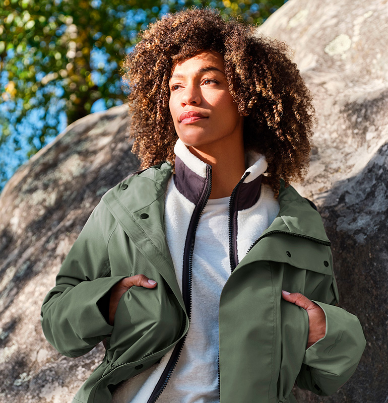 Regenjacke und Fleecejacke aus recycelten Materialien
